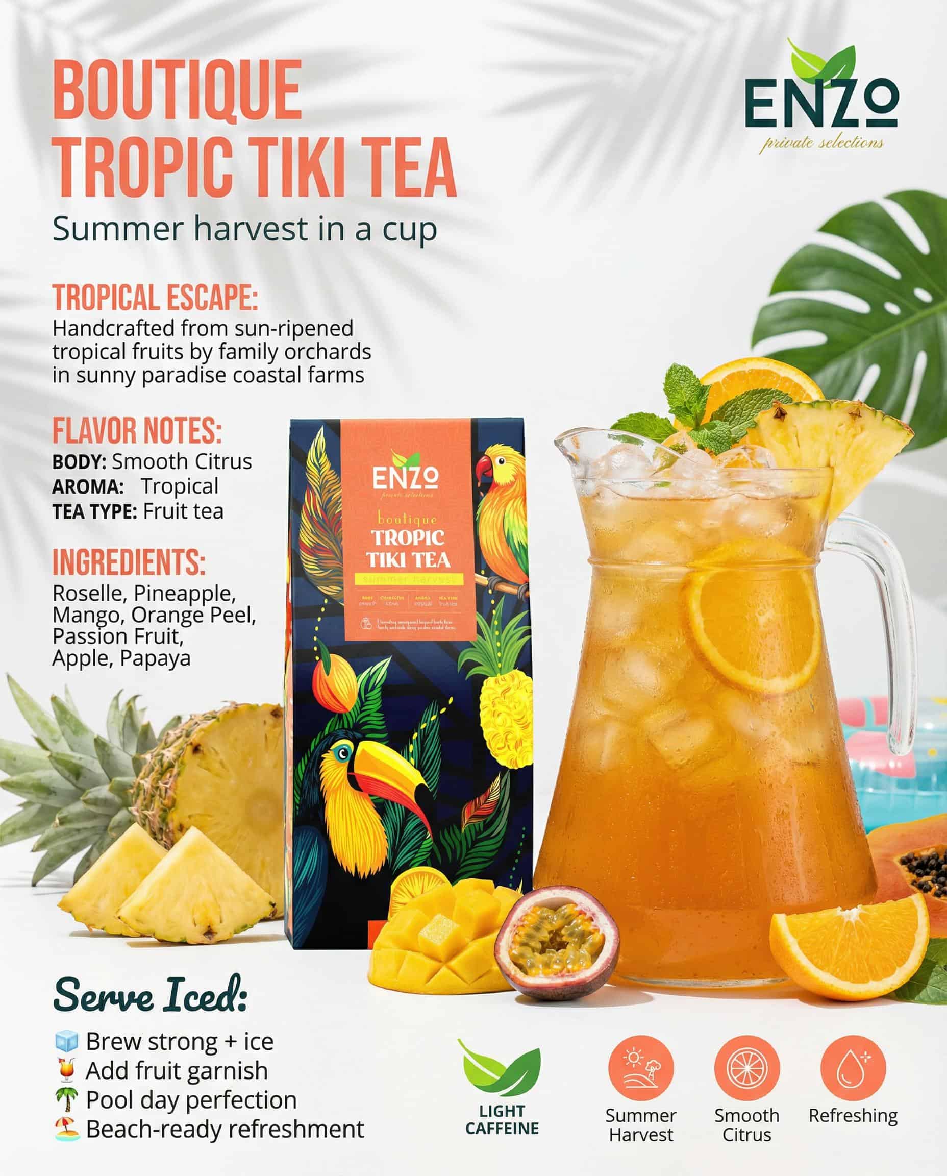 Zero-calorie benefit of Enzo’s fruit teas means no sugar crashes or digestive stress. You nourish body with antioxidants while creating mental space.
